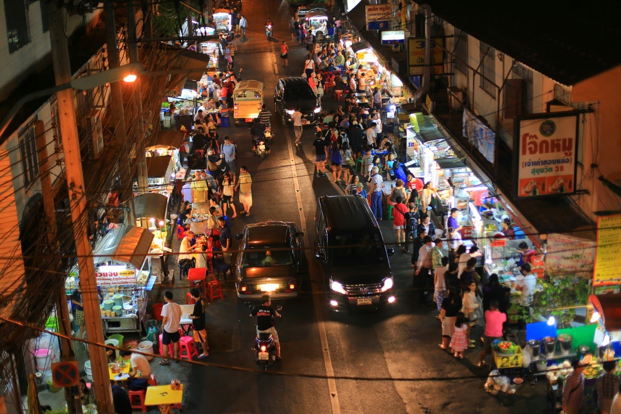 le Skytrain jusqu’au food market de Soi 38 qui régale les noctambules de