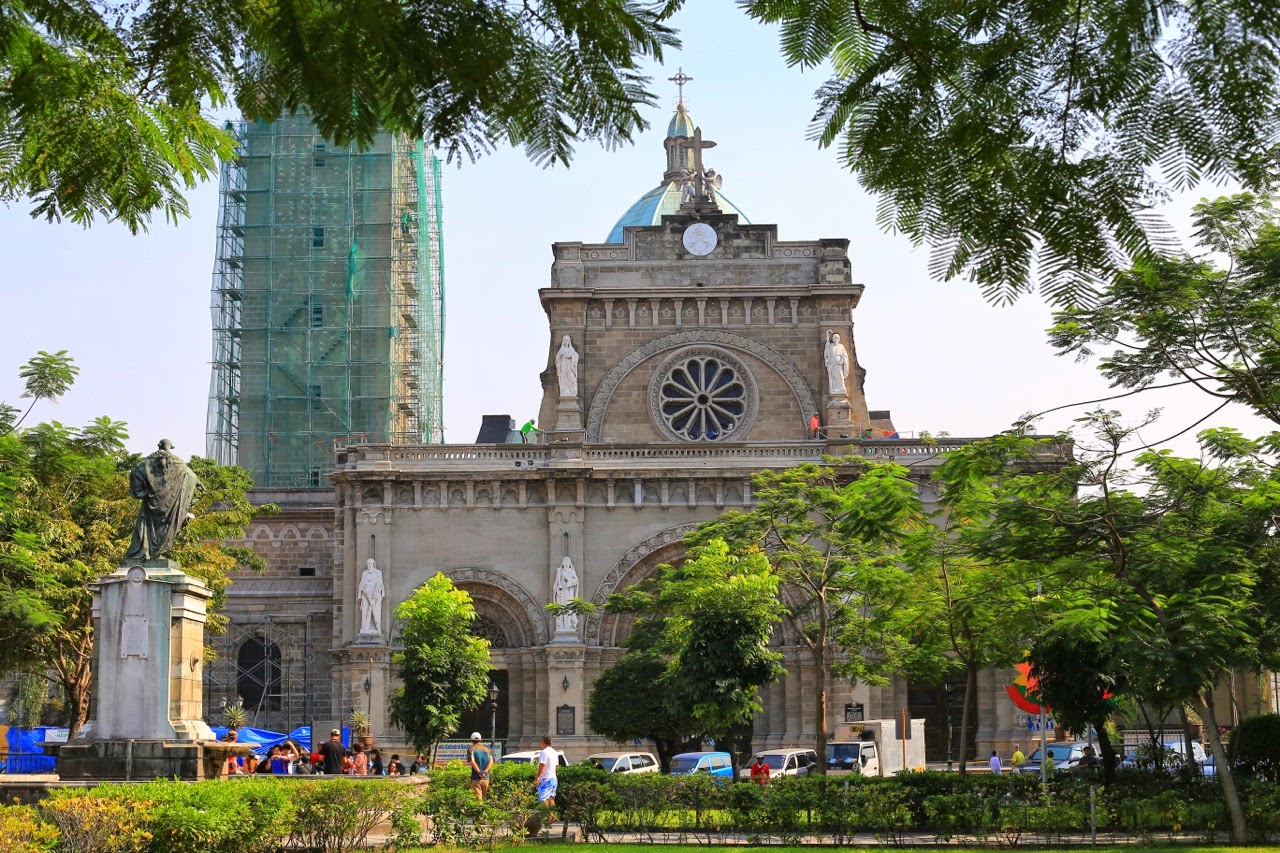 Bientôt la cathédrale de Manille se dresse devant nous avec son clocher en